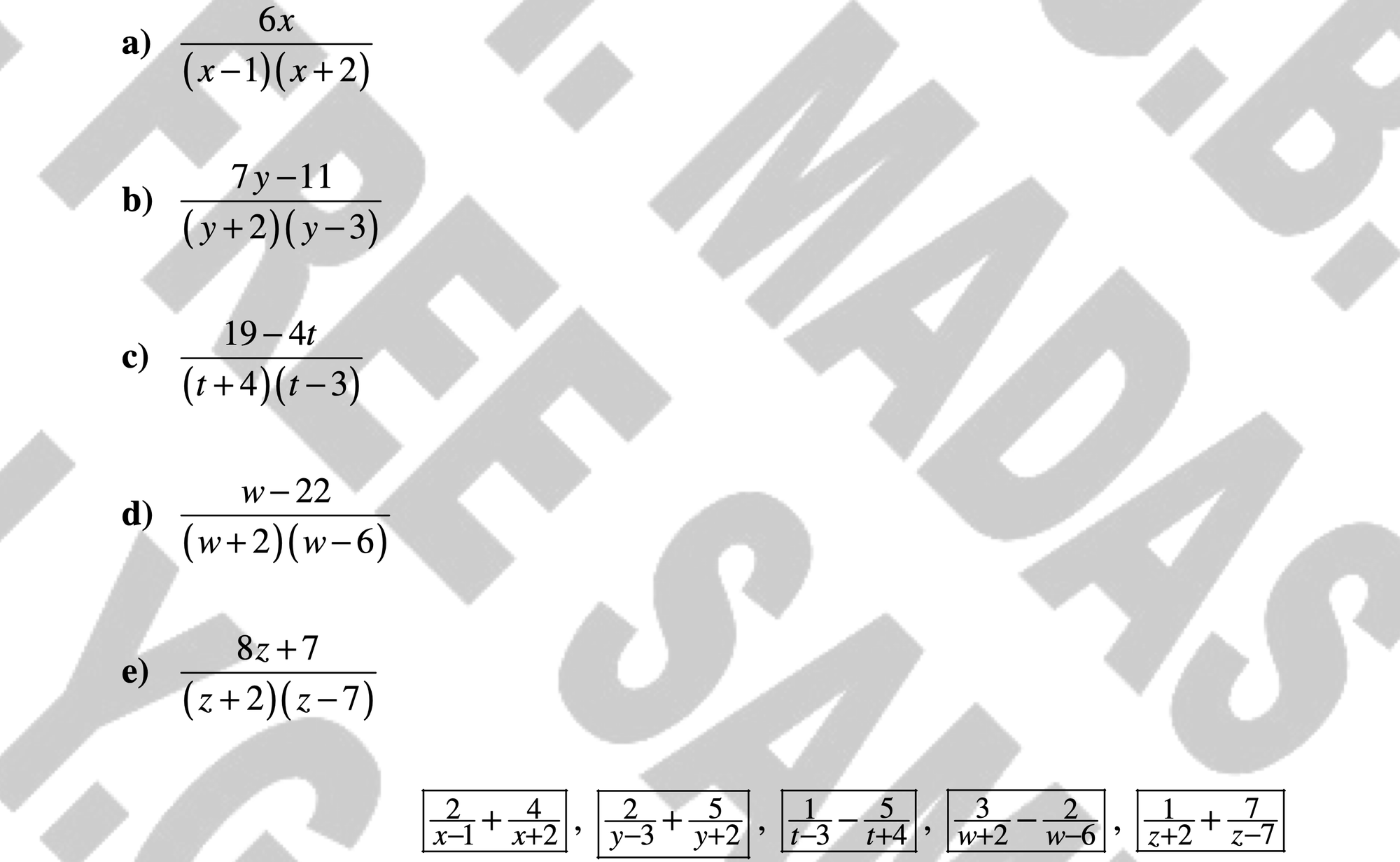 6x/(x-1)(x+2) = A/(x-1) + B/(x+2)