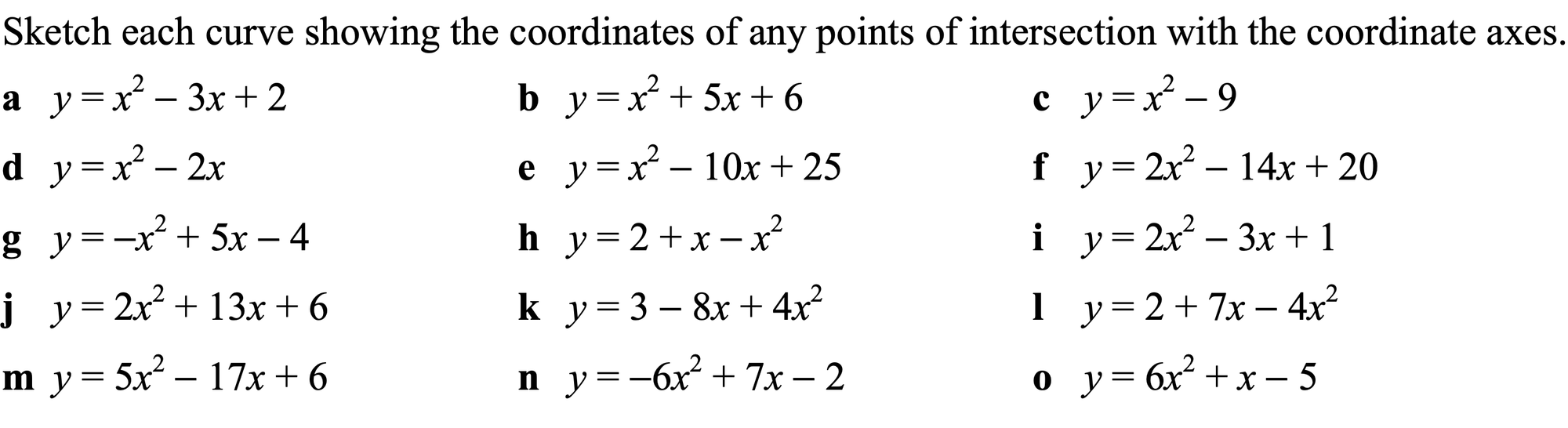 Sketching quadratics