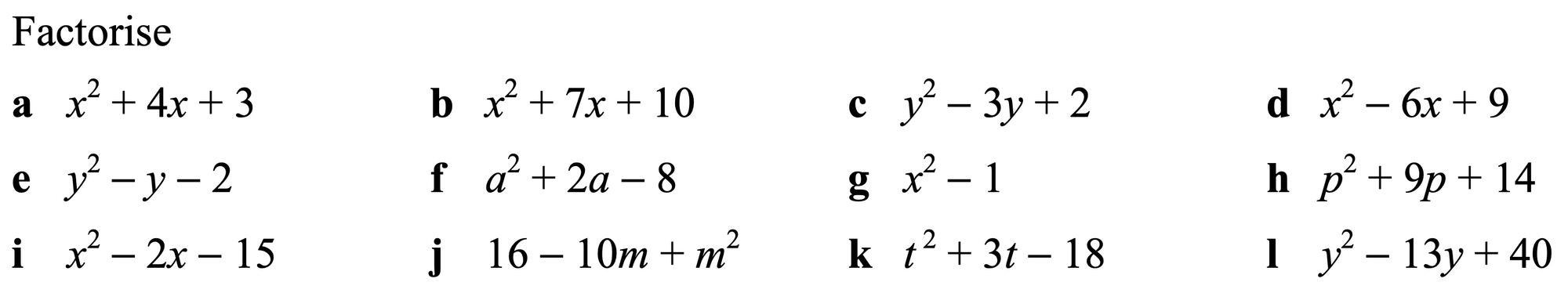 Factorising quadratics