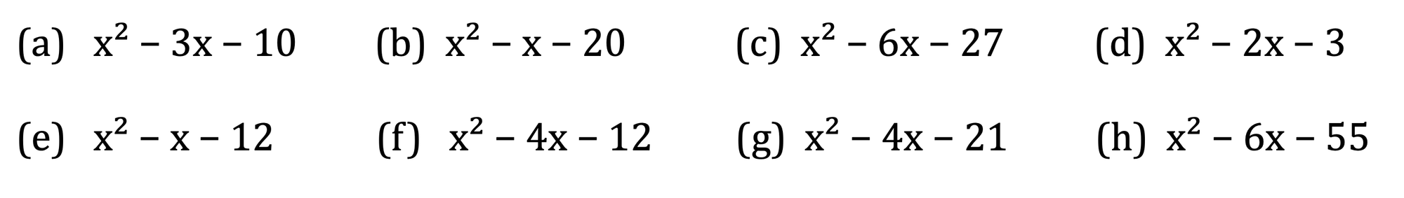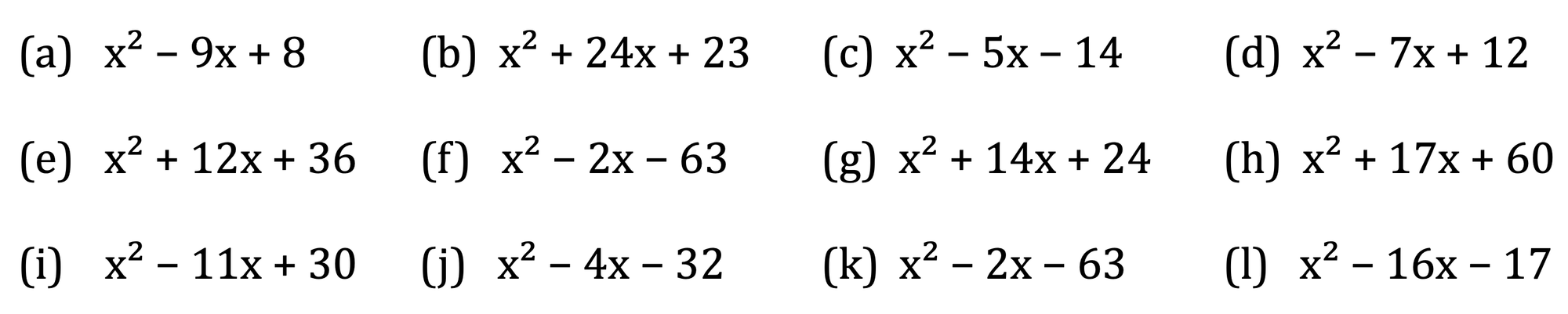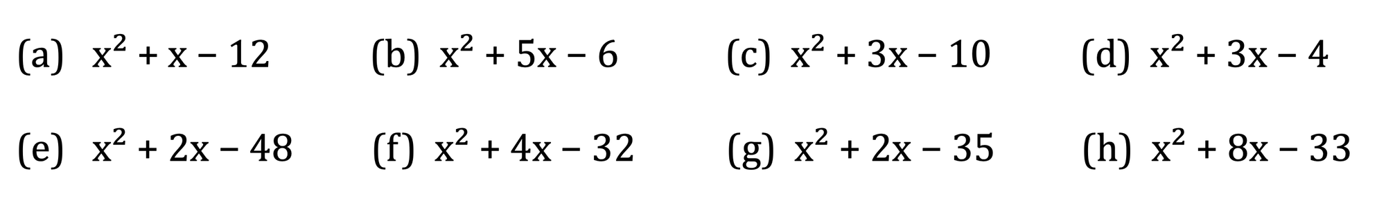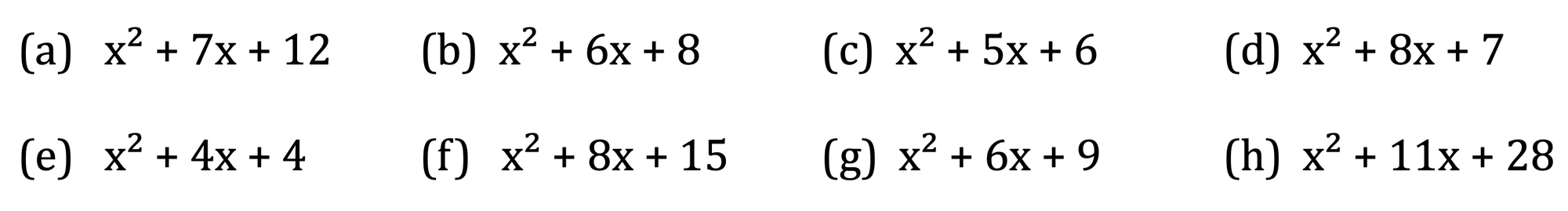 Factorising quadratics