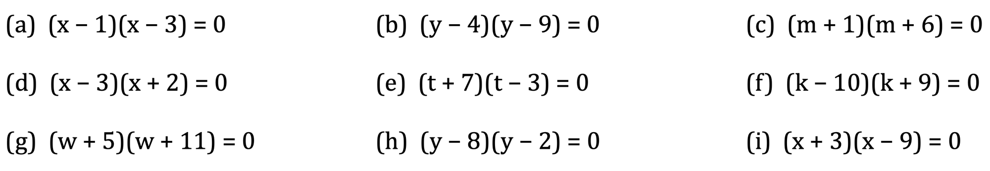 Solving quadratics by factorising