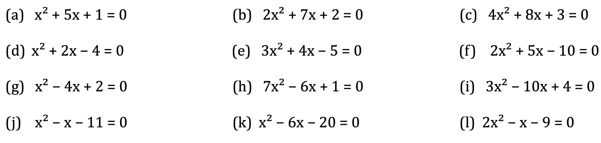 Solving quadratics with the quadratic formula